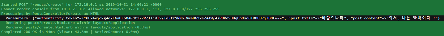 - params[:post_title] 에서 post_title은 input 태그 내 name에 정의된 이름입니다.