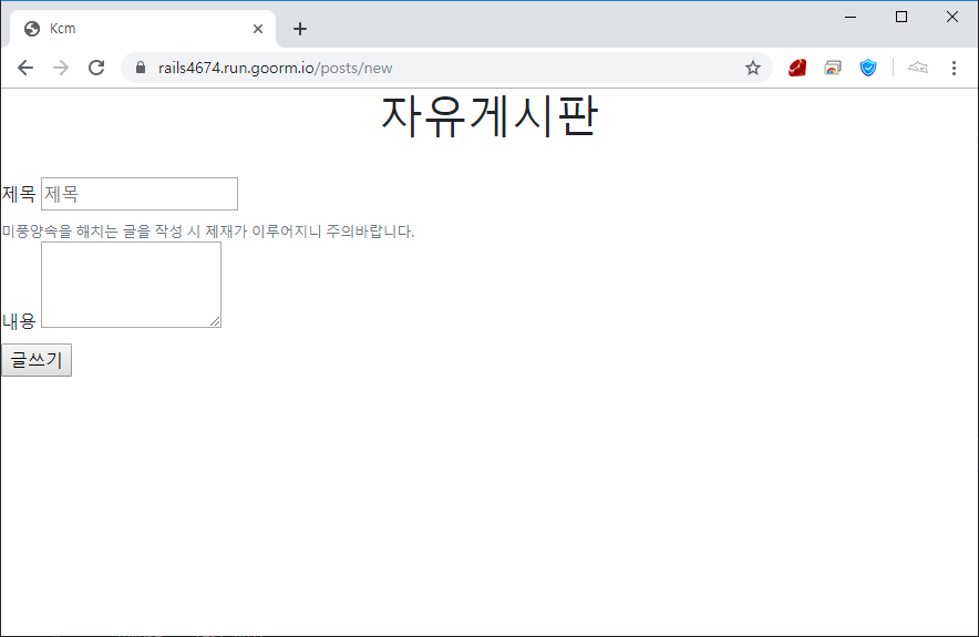 그리고 다시 http://.../posts/new 페이지로 가서 글을 다시 써보세요!