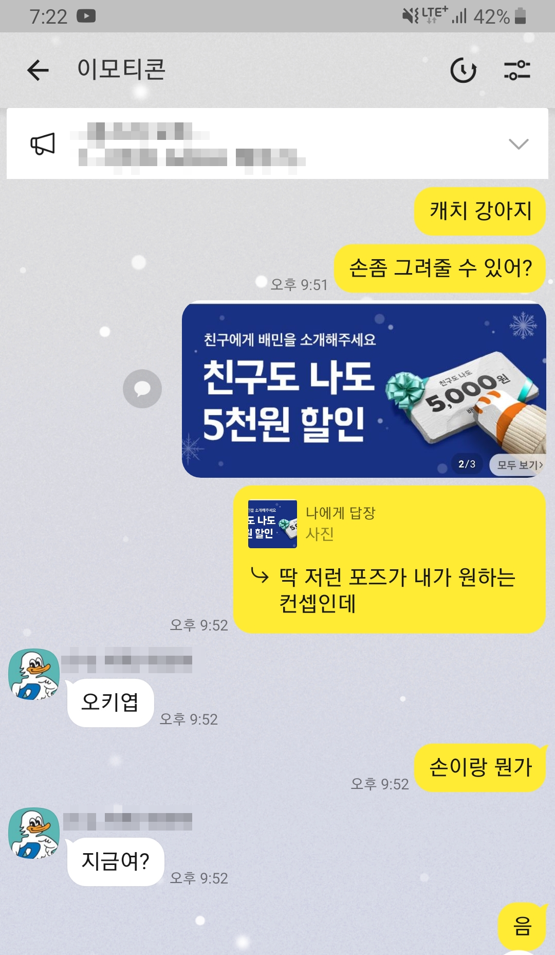 이번엔 이모티콘 하나를 제시해서 캐치 디자인을 다시 요청했습니다.