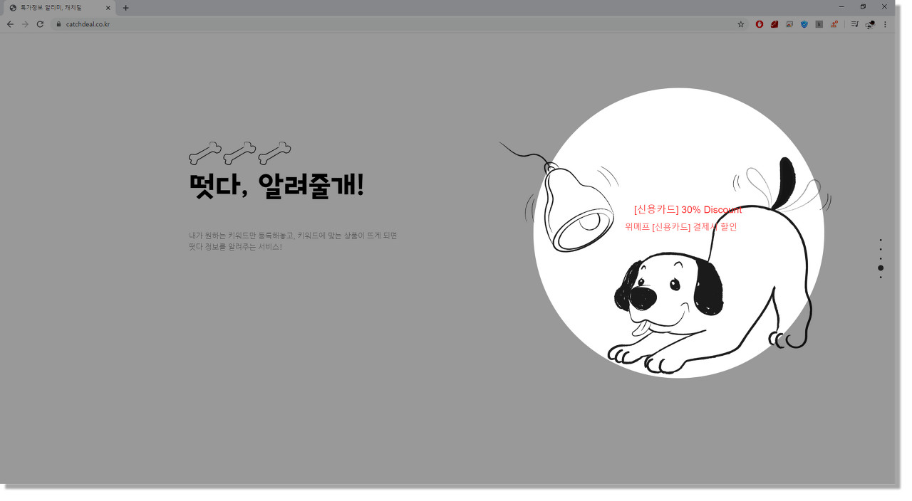 캐치딜 서비스는 2019년 10월부터 시작된 토이프로젝트의 일환으로, 같은 대학 주니어 대학생 3명이서 똘똘뭉쳐 제작된 프로젝트입니다.
