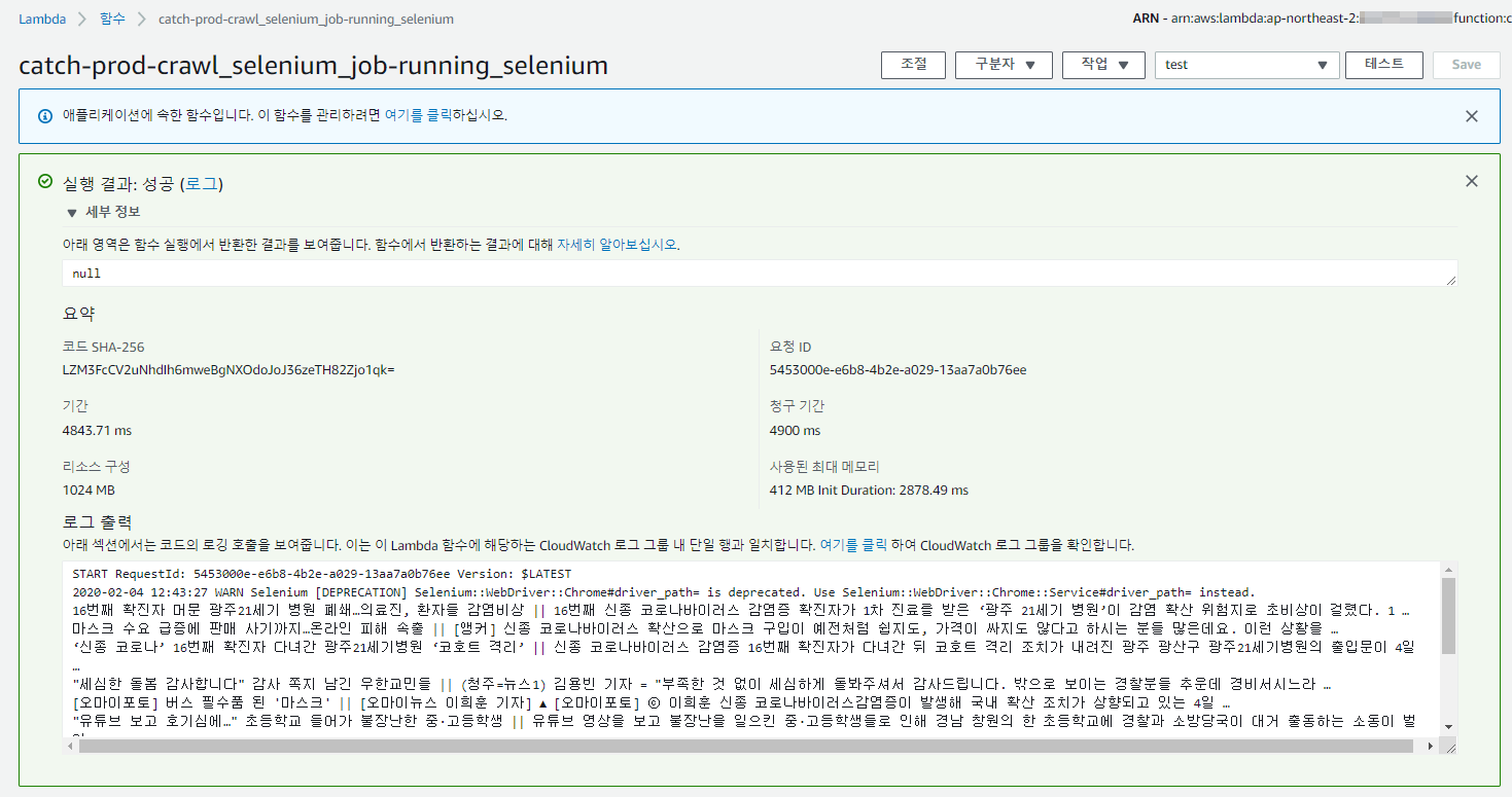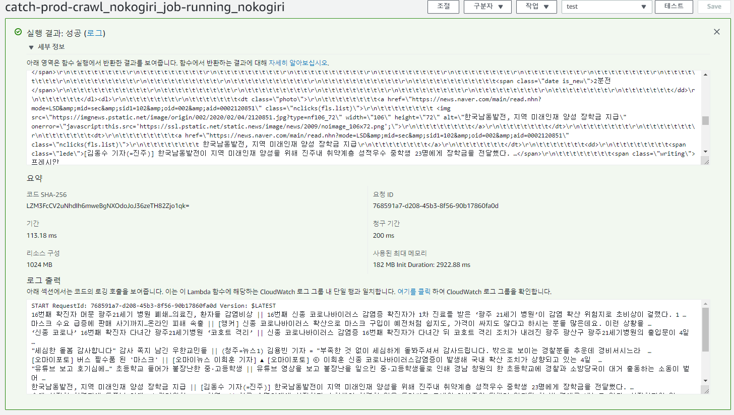 AWS Lambda에서 동일한 페이지 내 영역에 대해 크롤링을 돌려보겠습니다.