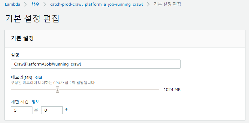 과거에 있었던 Selenium 메모리 이슈에 대해 많은 대안책을 찾아보았습니다. 그리고 그 해답은 AWS Lmabda였는데, 크롤링 작업을 람다에서 맡아서 작업하는 이후, 부족했던 메모리 문제에 대해 해결할 수 있었습니다. 이는 AWS Lambda에서는 최대 3GB 내에서 자유롭게 메모리 사용량을 조절할 수 있는 덕분입니다.