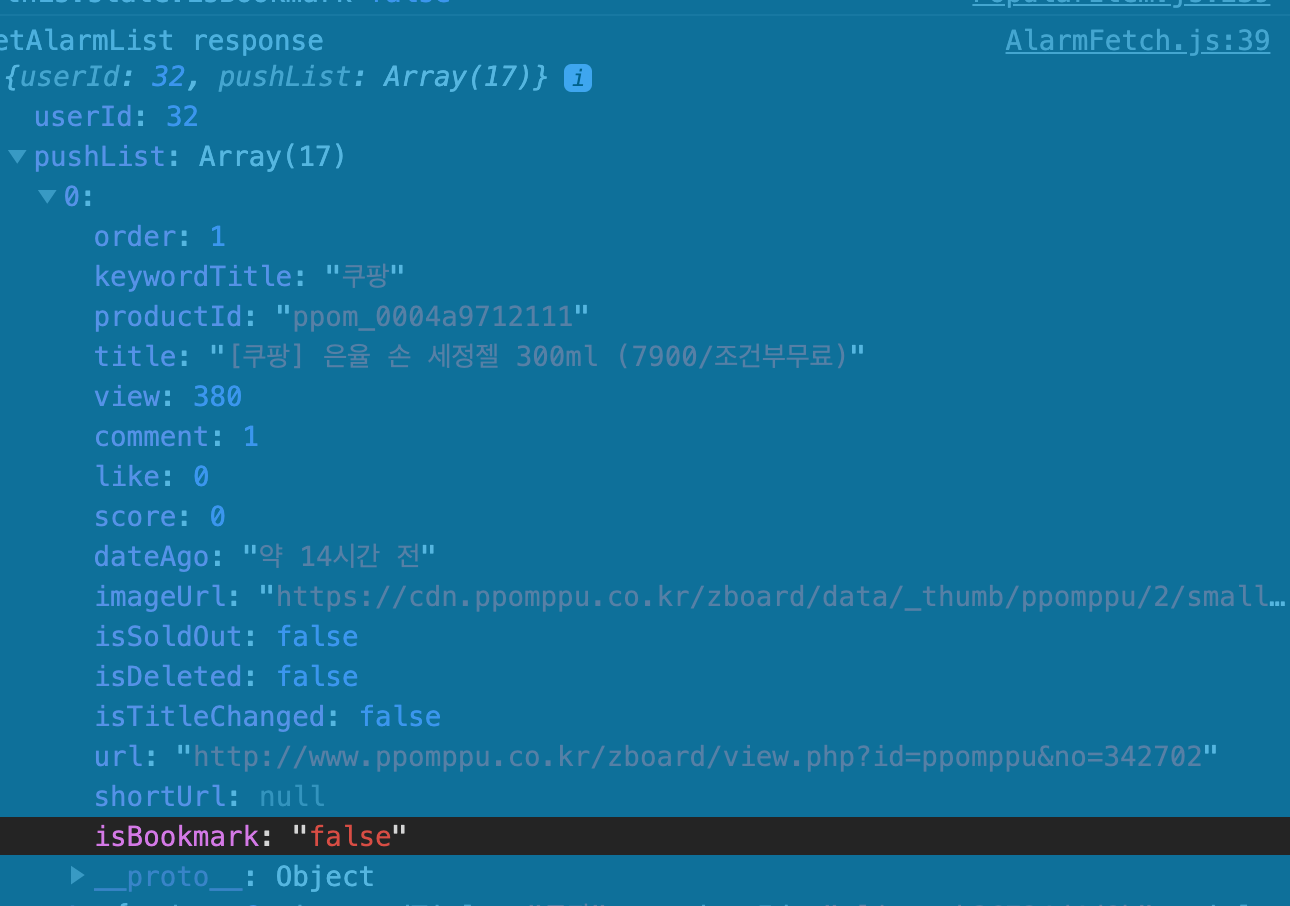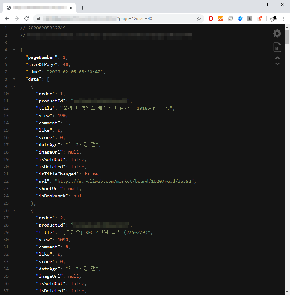 앱에서 웹서버와 통신을 하게되면 웹서버는 위와같이 json 포맷을 통해 데이터를 Return하게 되어있습니다.