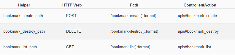 - 컬렉션이라 불리는 메인 CRUD 명칭인 bookmark는 하나가 아닌 복수 개의 bookmark를 가지고 있으므로 bookmarks라고 표현하는게 적절합니다.
