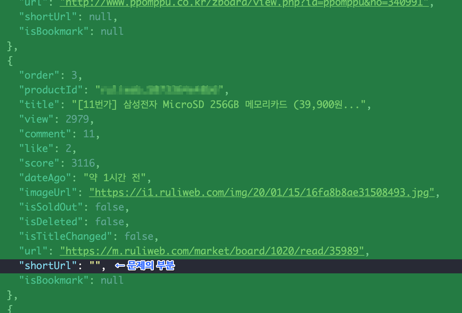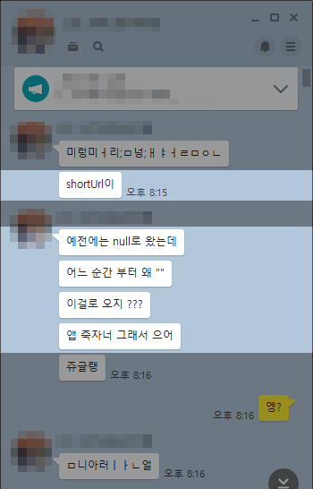 웹서버에서 어떤 값에 대해 ""로 Return이 되었었는데, 하필 앱에서 ""의 처리를 따로 내려주지 않았다 보니 앱이 이를 제대로 해석하지 못해서 맛이 갔다는 겁니다..ㄷ