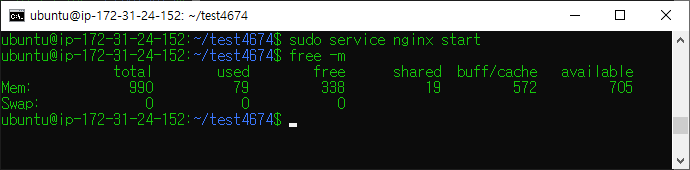 아주 기본적인 Rails 프로젝트 상태에서 Nginx와 Puma를 통해 서버를 켰다 했을 때, 메모리 사용량을 비교해 봐도 메모리 사용량이 2배 가량 차이가 납니다.