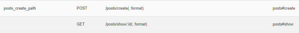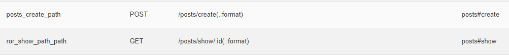 위 사진을 보면 /posts/index 는 라우터헬퍼 명칭이 있지만, /posts/show/:id 는 라우터헬퍼 명칭이 존재하지 않습니다.