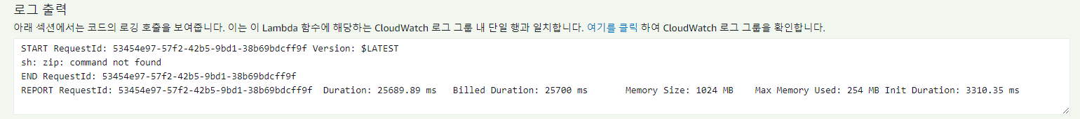 AWS Lambda에서는 파일 압축을 하는 zip 명령어(unzip package)에 대한 지원을 하지 않습니다.