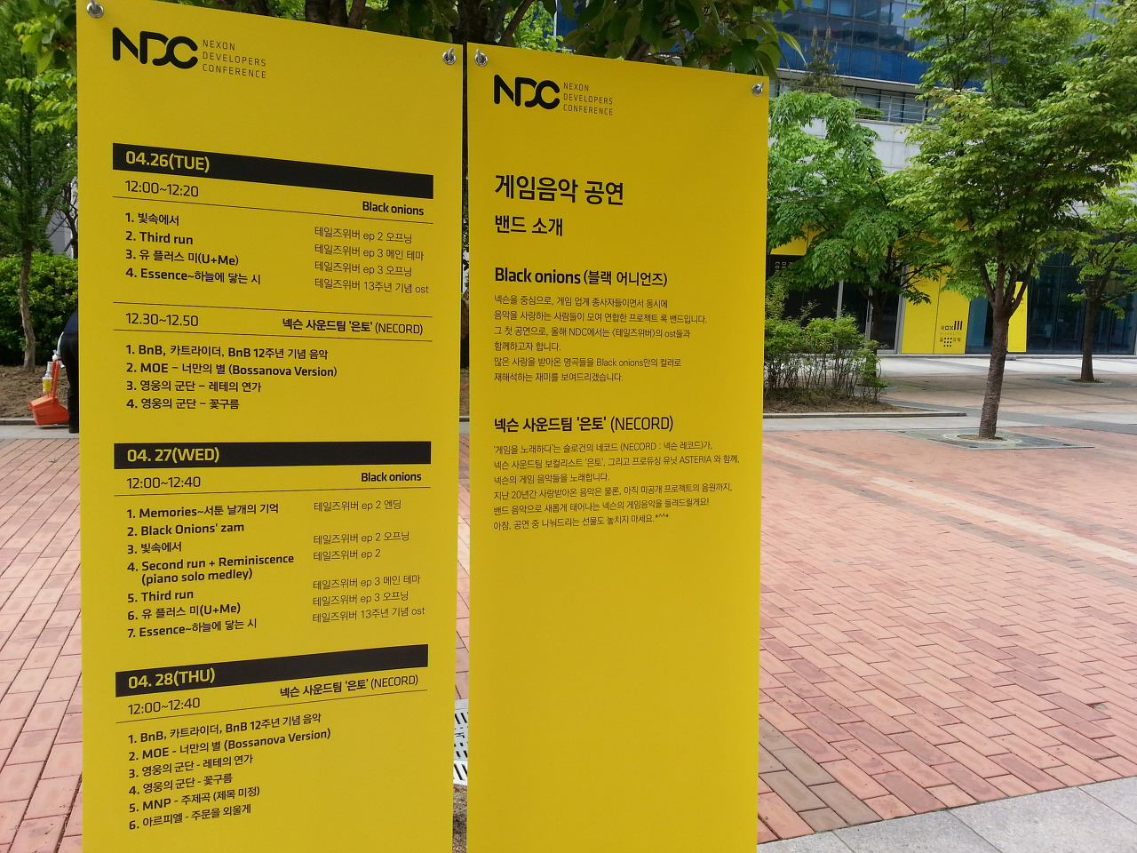 NDC 2016때는 점심시간 때 버스킷공연을 하곤 했는데, 4월 26일은 은토 (NECORDER)팀의 거리공연이 있는 날이었습니다!