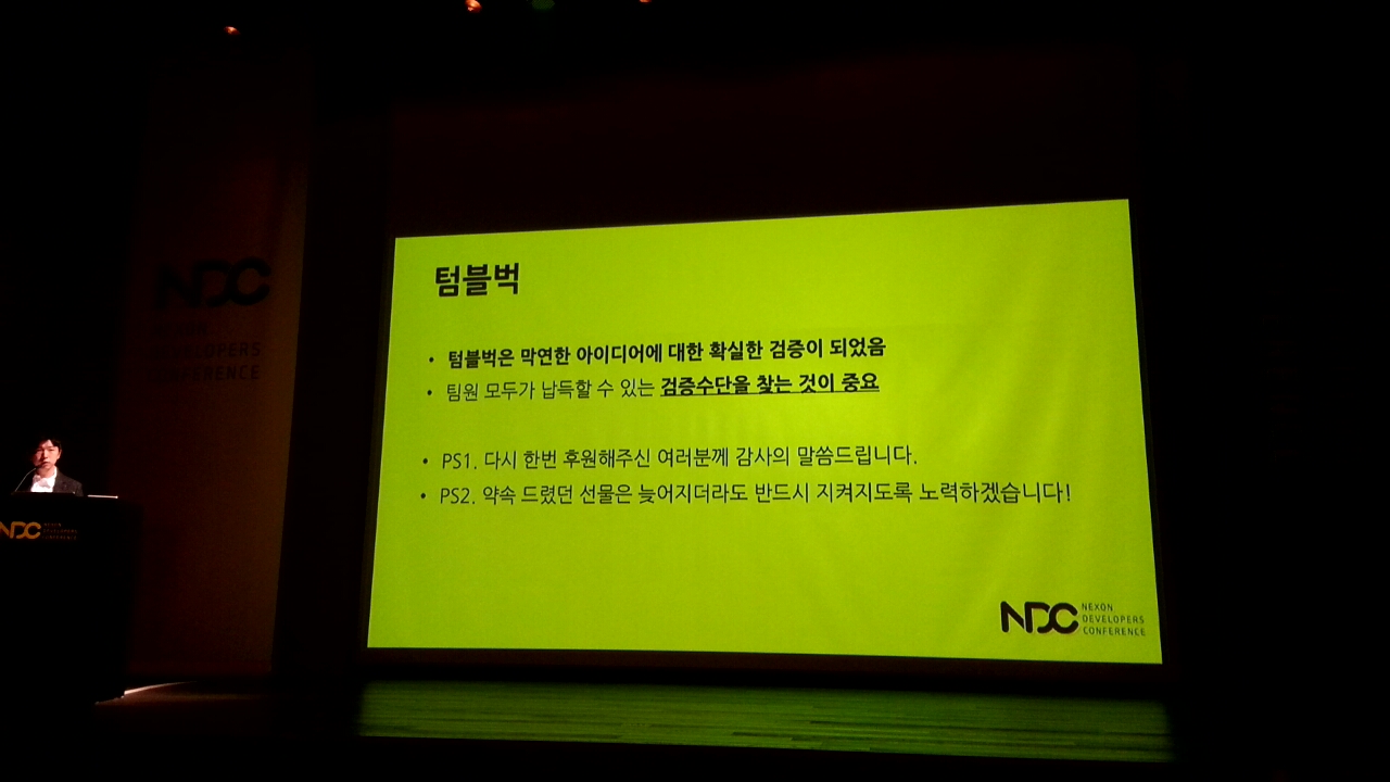 텀블벅에 후원해준 것에 대해서는 이번 NDC강연에서도 아낌없이 감사의 인사를 남겼으며, 텀블벅 때 후원자들에게 제시한 약속은 조금 늦어질 수도 있겠으나, 반드시 지키겠다는 강조를 했습니다.