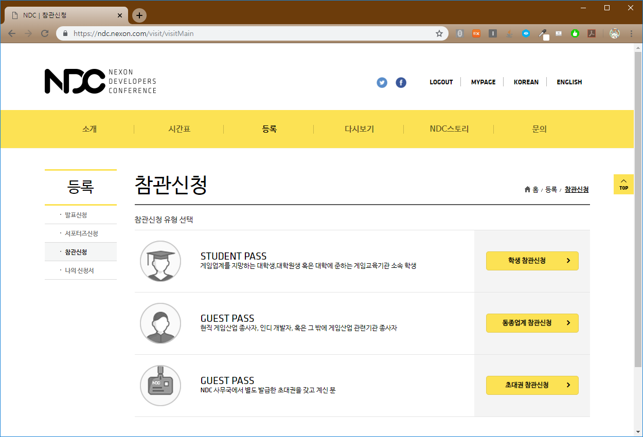 4월 8일부터 4월 12일 오후 17시까지 NDC 참관 신청을 받고있습니다.
