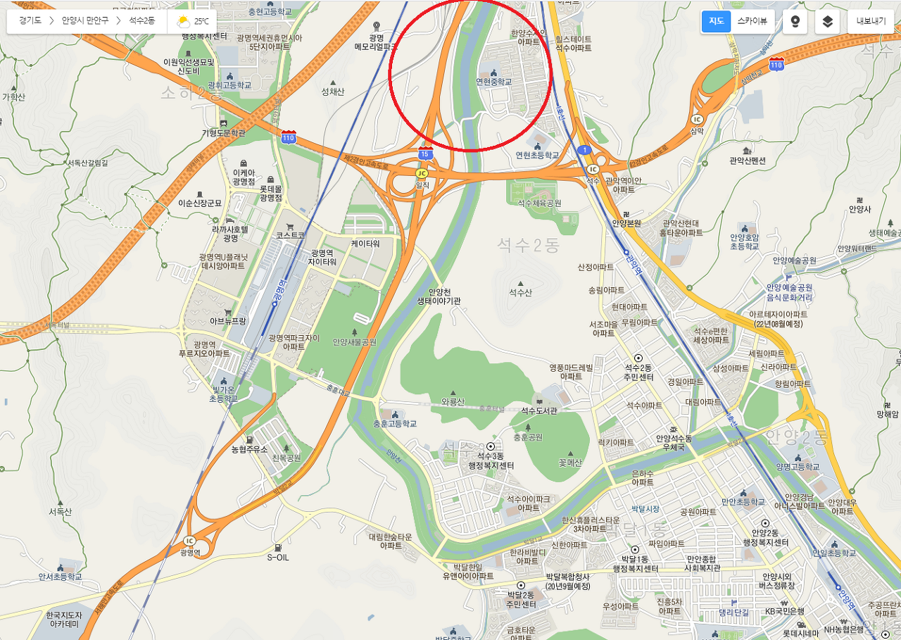 지도로 치면 한.. 아래 사진의 저 빨간원 범위 내 까진 달린 것 같네요.