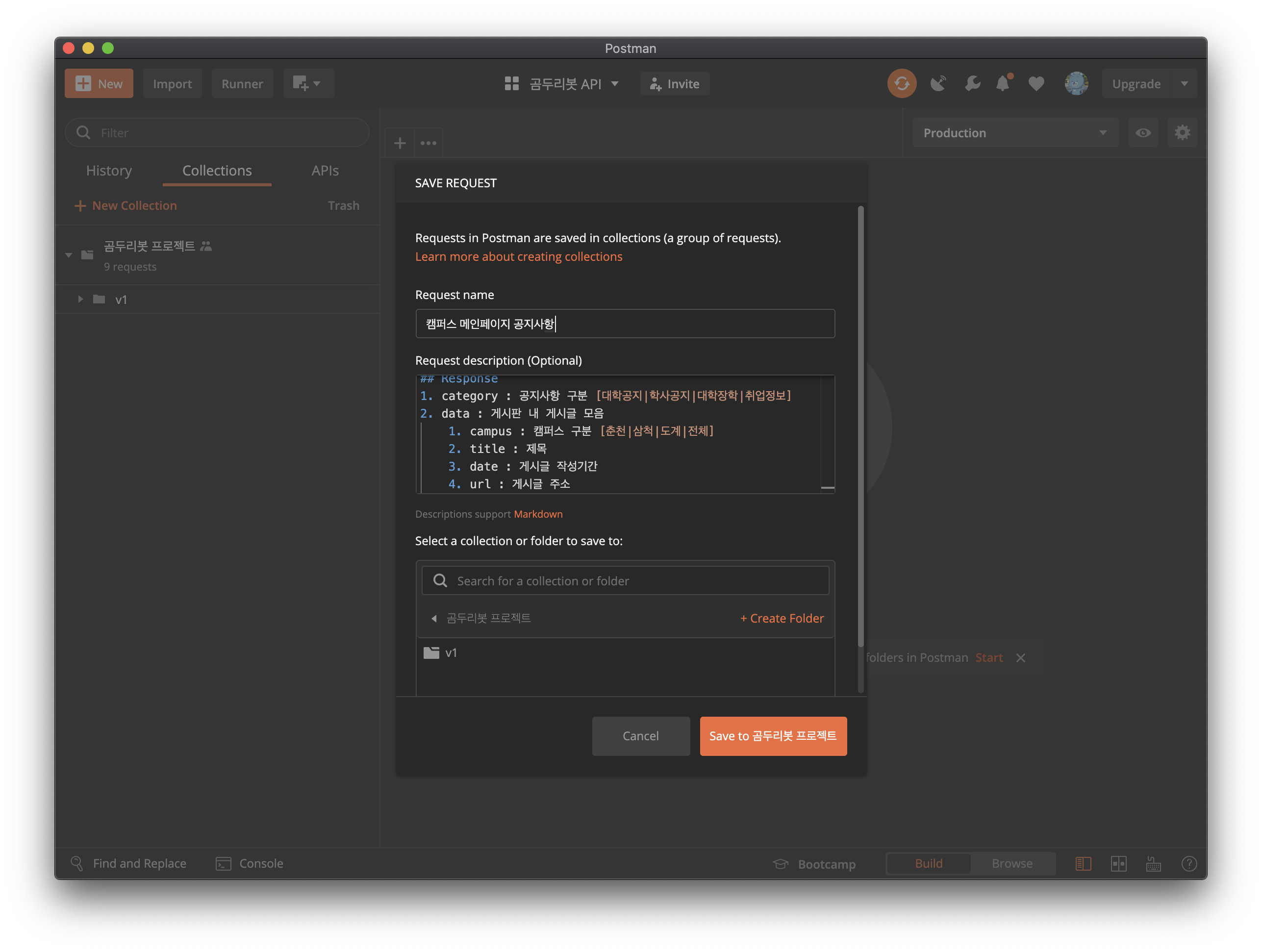 여기까지 POSTMAN을 활용한 API 문서 제작법에 대해 알아봤습니다.