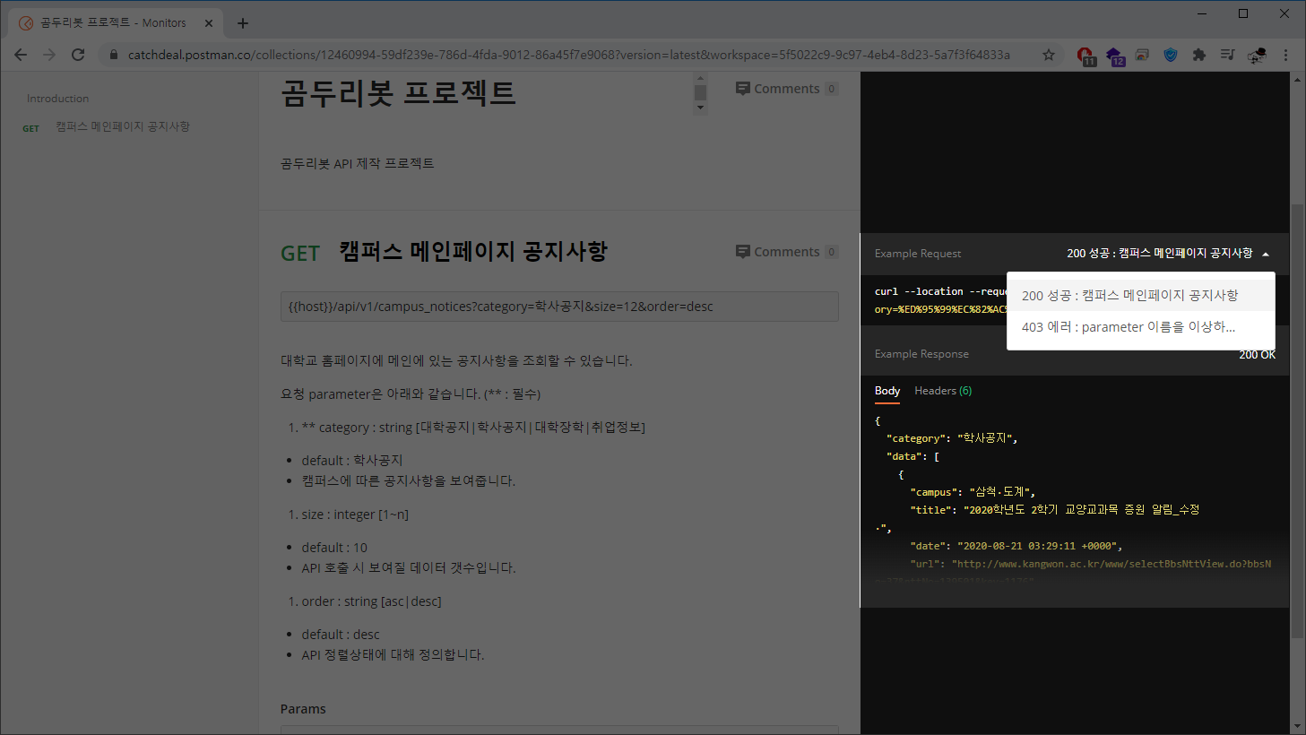 저는 200 응답과 403 에러에 대한 Mocking을 만들었습니다.