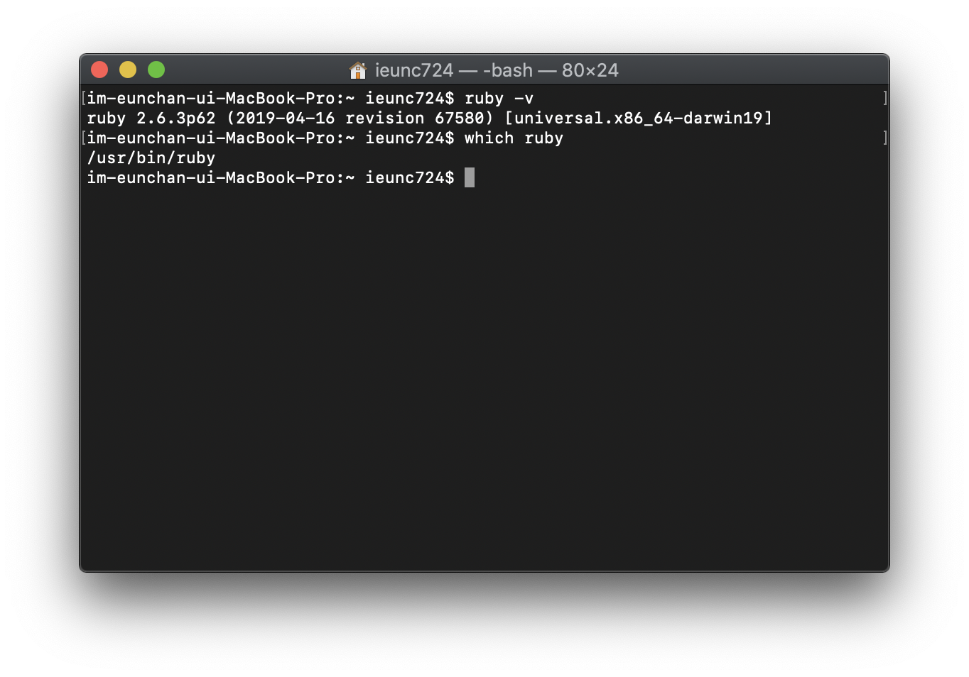 2. ruby 버전 설치가 끝난 후, 설치가 잘 됐는지 확인합니다.