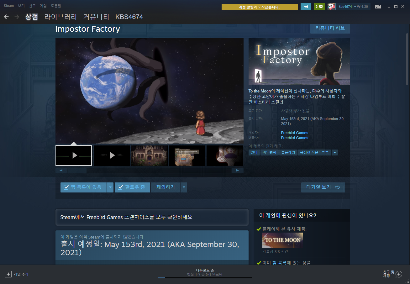 | Impostor Factory, 바로 구매했고 플레이 완주 했습니다. (0) | 2021.10.01 |