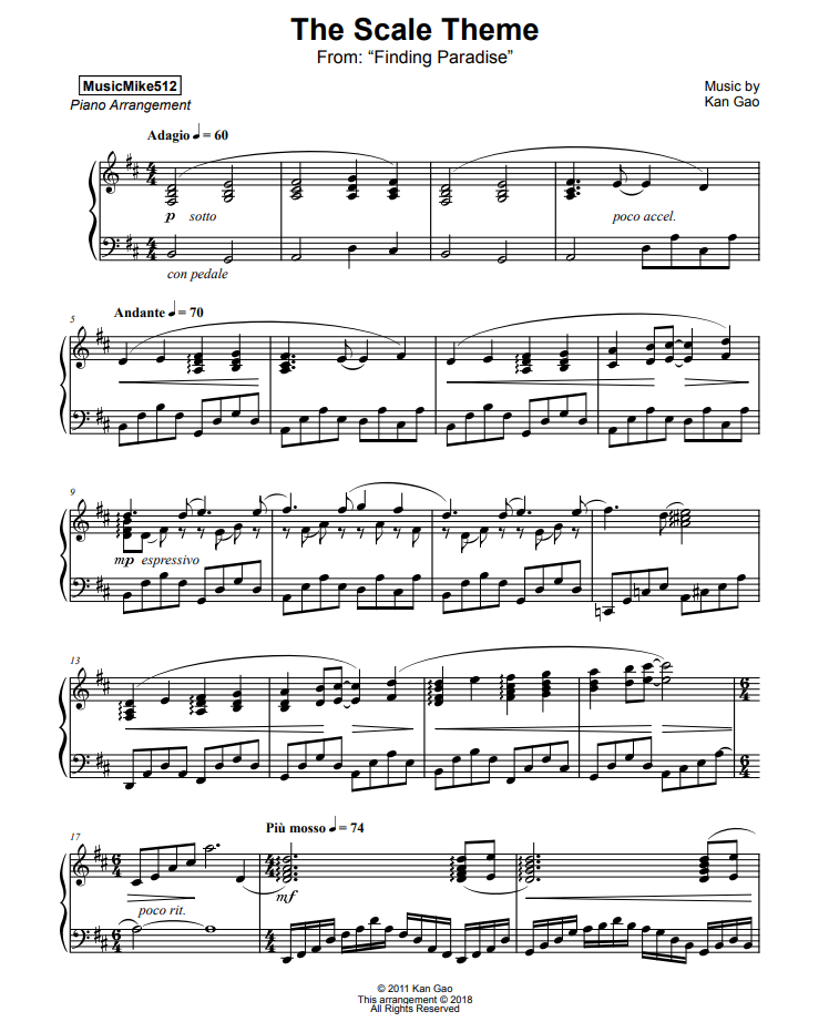 Finding Paradise - The Scale Theme의 악보는 유투버 MusicMike512 님의 악보를 참고했습니다.