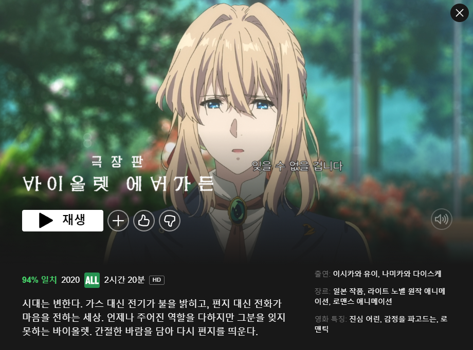 지금으로 부터 약 2달 전(2021. 10. 13), 넷플릭스에서 바이올렛 에버가든 극장판이 또 출시했던 날입니다.