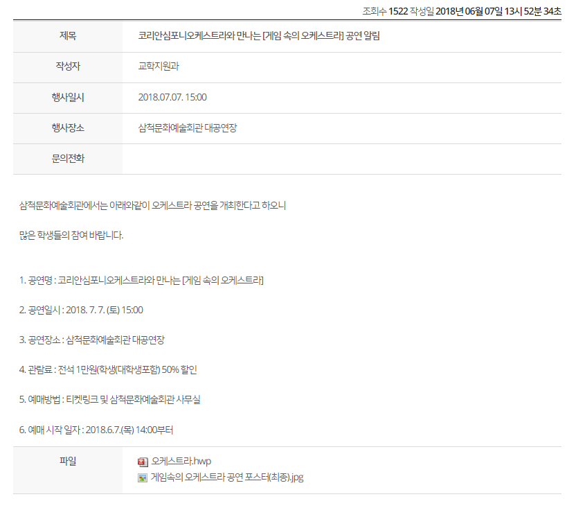 갑자기 오케스트라 공연이 삼척에서 열린다는 소식이다.