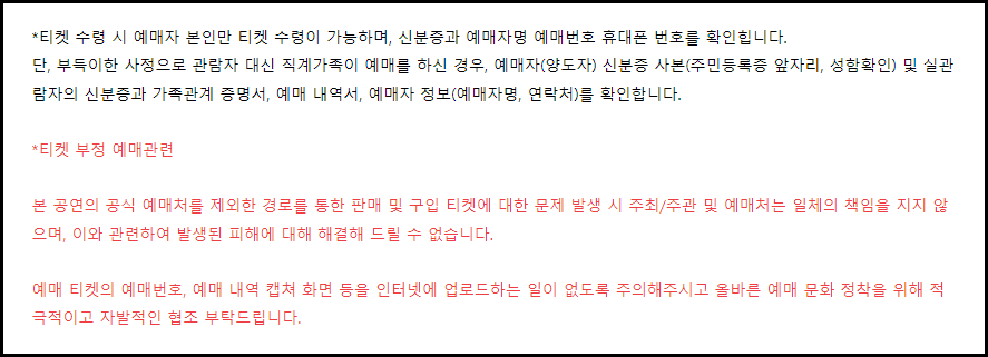 안그래도 암표상들이 활개치는 공연이다보니 이 피해로 인해 못간사람들도 많고, 나 또한 피해자가 될 수 있었다.. 이 부분은 너무나 아쉬운 부분이었다.