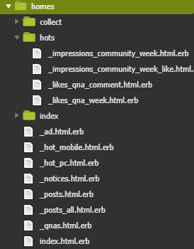 - <%= render '...' %> 에서 파일을 지목할 땐, 확장자, 밑줄 작성은 생략한다.