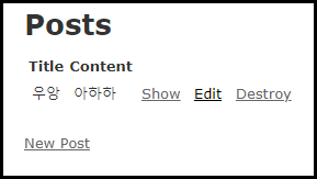 1.아래 코드는 게시판(Scaffold)의 app/views/posts/show.html.erb 내용입니다.