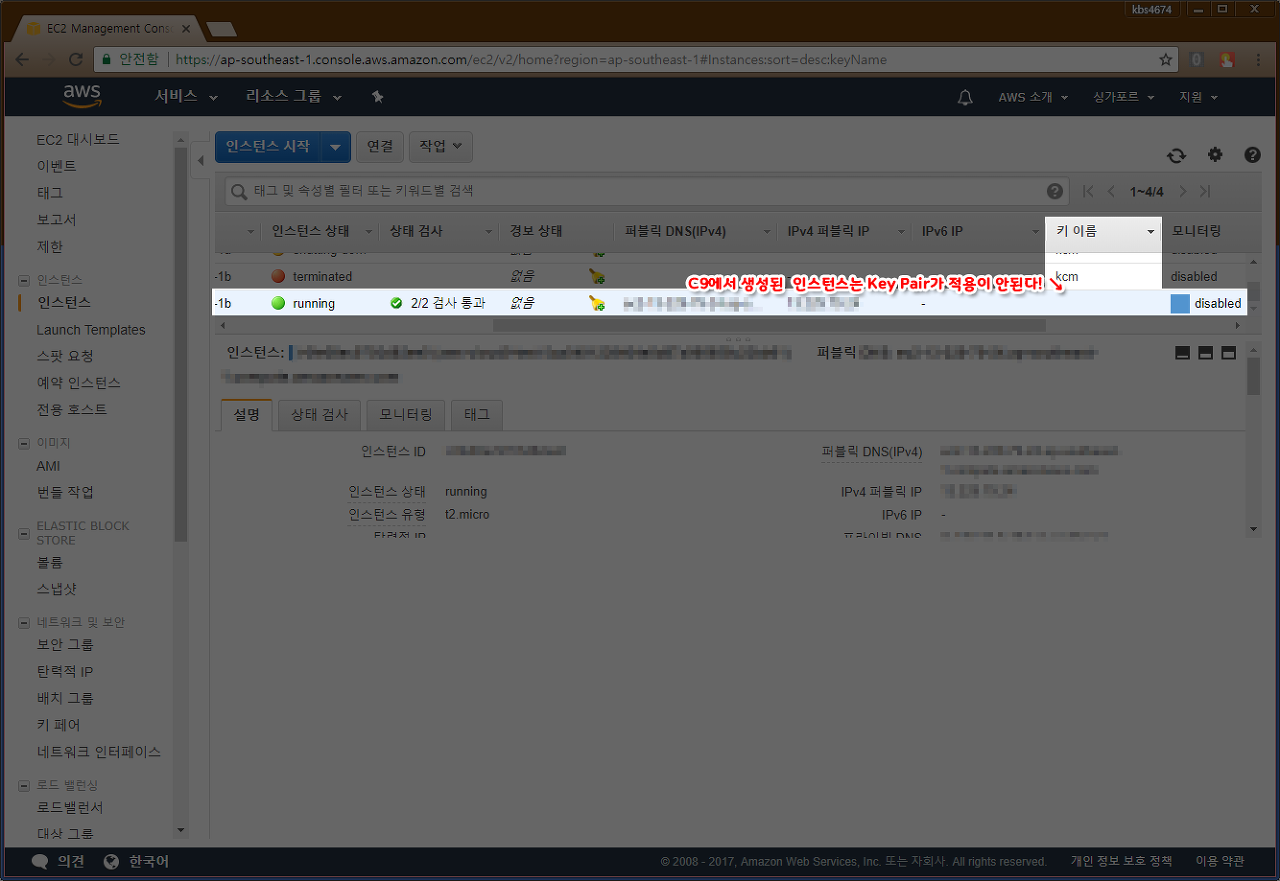 하지만 부득이하게 'Putty' 등 SSH 쉘 환경에서 작업을 하고 싶은데.. 위 사진을 보시면 키 페어가 없습니다!(!?)