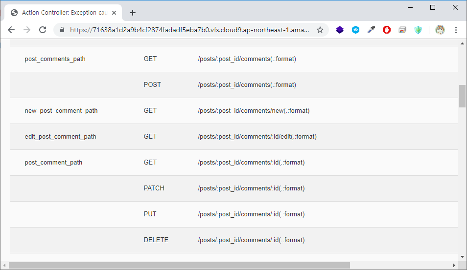 posts do로 감싸진 부분이 /post/:post_id/comments 와 같은 형식으로 자동으로 URI 규칙이 정의됩니다.