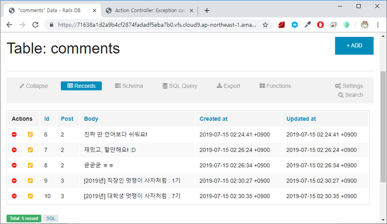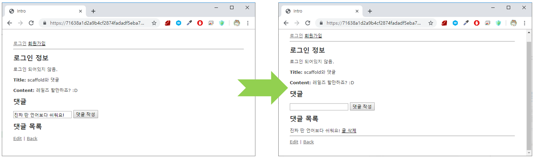 8. 이제 댓글 기능이 완성되었습니다! 직접 댓글을 등록해보고, 삭제해보세요!