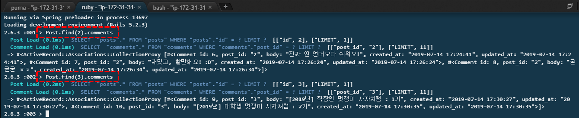 dependent : Post와 has_many로 관계정의가 된 comments 테이블 관계에 있어 Post 데이터가 삭제 시, 그와 관련된 댓글들 또한 자동적으로 삭제가 이루어집니다.
