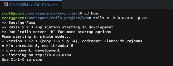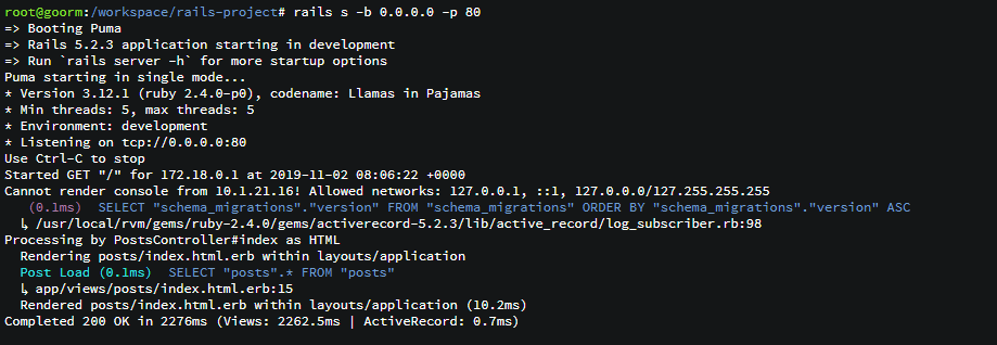 7. 간단히 서버를 한번 켜서 Rails를 돌려보겠습니다.