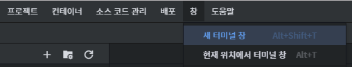 2) 구름 IDE 상단 메뉴에서 창 - 새 터미널 창 을 클릭해주세요.