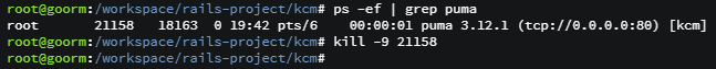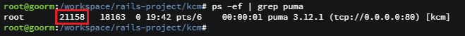 1. 현재 서버에 돌아가는 Job 목록 중, Puma Job을 찾아냅니다.