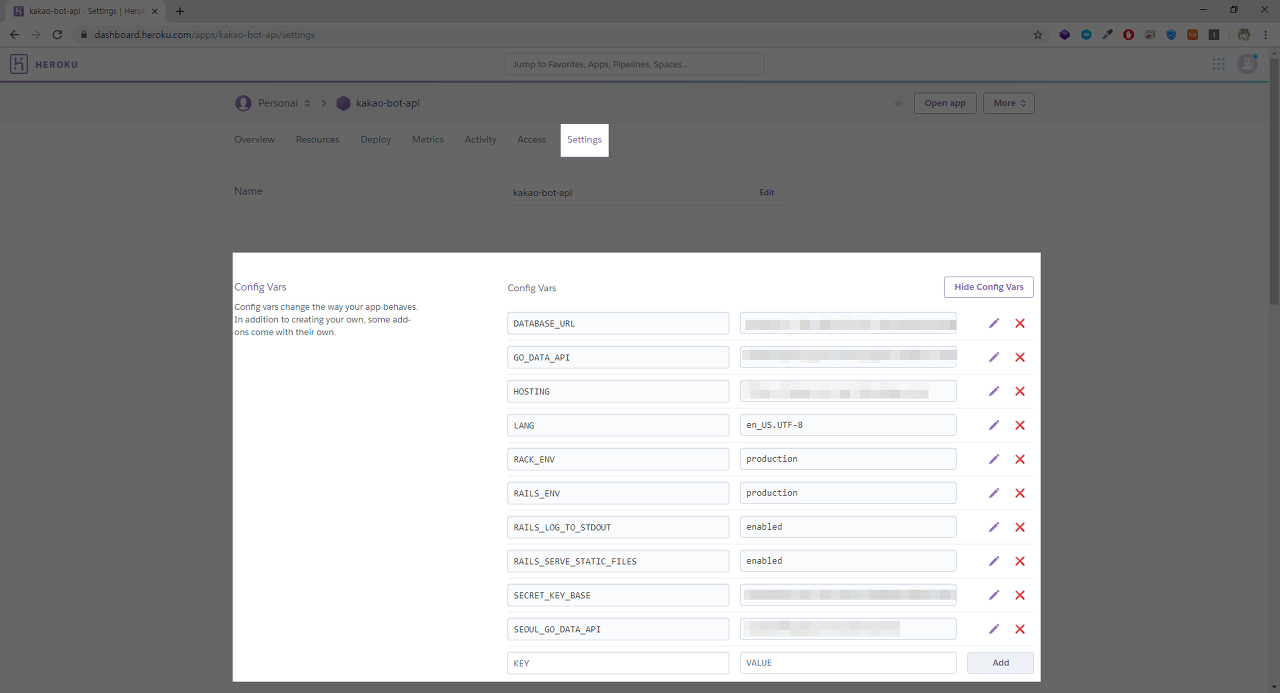 Heroku 환경변수 설정