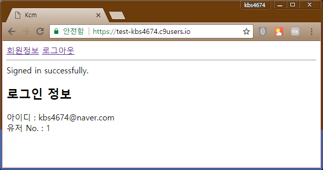 아이디 : <%= current_user.email %><br/>