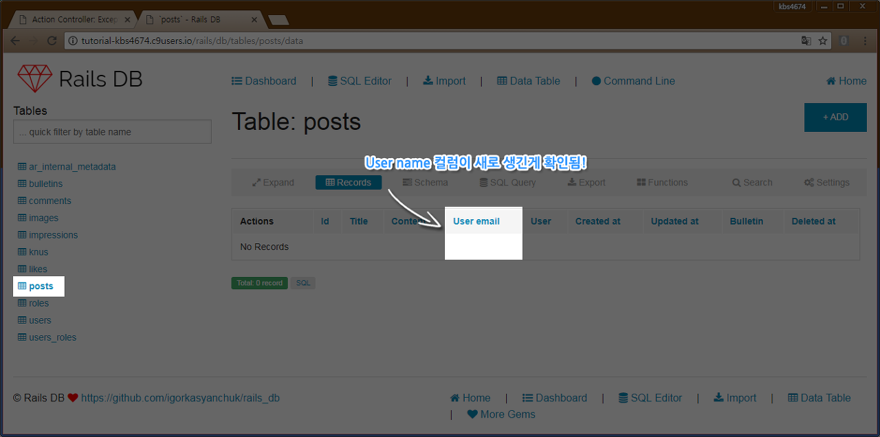 참고 필자의 경우, 게시판 테이블 정보는 db/migrate/[기간]_create_posts.rb 에 담겨져 있습니다.
