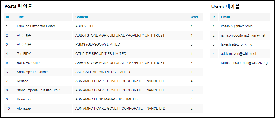 테이블 쿼리 탐색에 있어, 테이블 및 데이터는 위 테이블 내 자료를 기반으로 진행합니다.