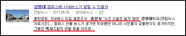 먼 옛날부터 춘천시 교통에 있어 강원대 학생들은 버스노선의 신설에 대해 민감하게 반응하는 택시업계와의 갈등으로 불만이 많았지만, 아무것도 할 수 없어서 어쩔 수 없이 현실에 순응하고 살아왔습니다.