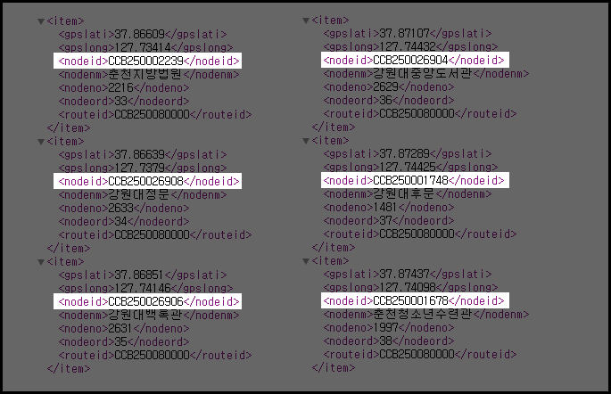 # 춘천역 과정과 알고리즘 동일, 정류장 ID가 담긴 변수만 다름