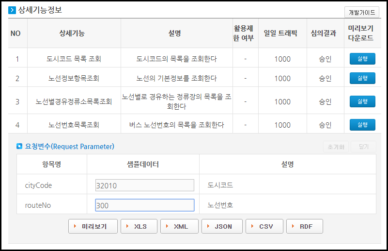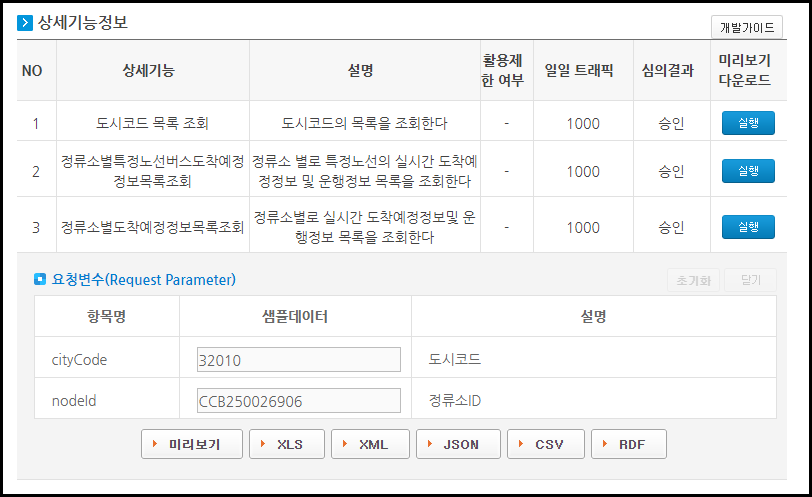 1. [버스노선정보조회서비스 : 도시코드 목록 조회] 도시코드(cityCode) 확인