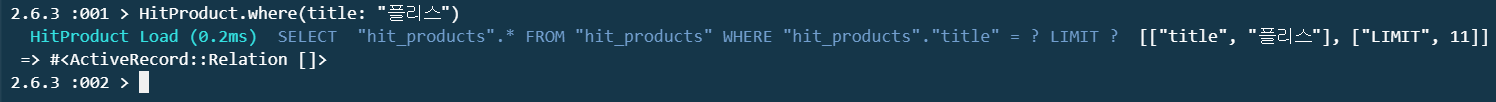 [Model].where(title: "플리스")