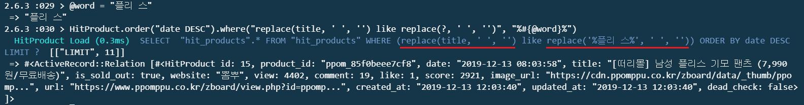 [Model].where(title: "[떠리몰] 남성 플리스 기모 팬츠 (7,990원/무료배송)")