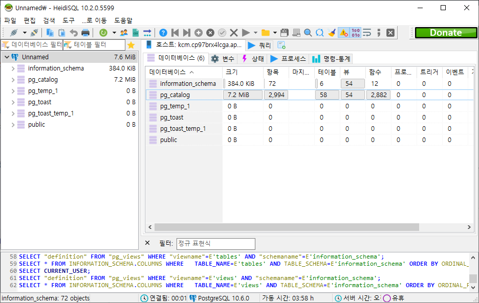 4. 로그인을 하면 RDS의 PostgreSQL의 DB열람을 확인하실 수 있습니다.