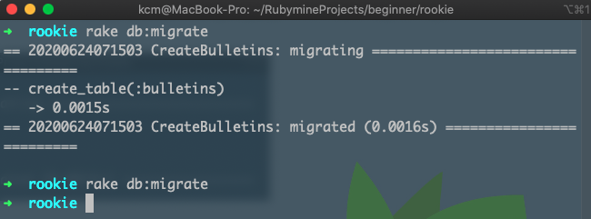 본래 마이그레이션을 이미 실행 한 경우 마이그레이션을 편집하고 마이그레이션을 다시 실행할 수 없습니다. Rails는 마이그레이션을 이미 실행 한 것으로 간주하여 실행할 때 아무 작업도 수행하지 않습니다.